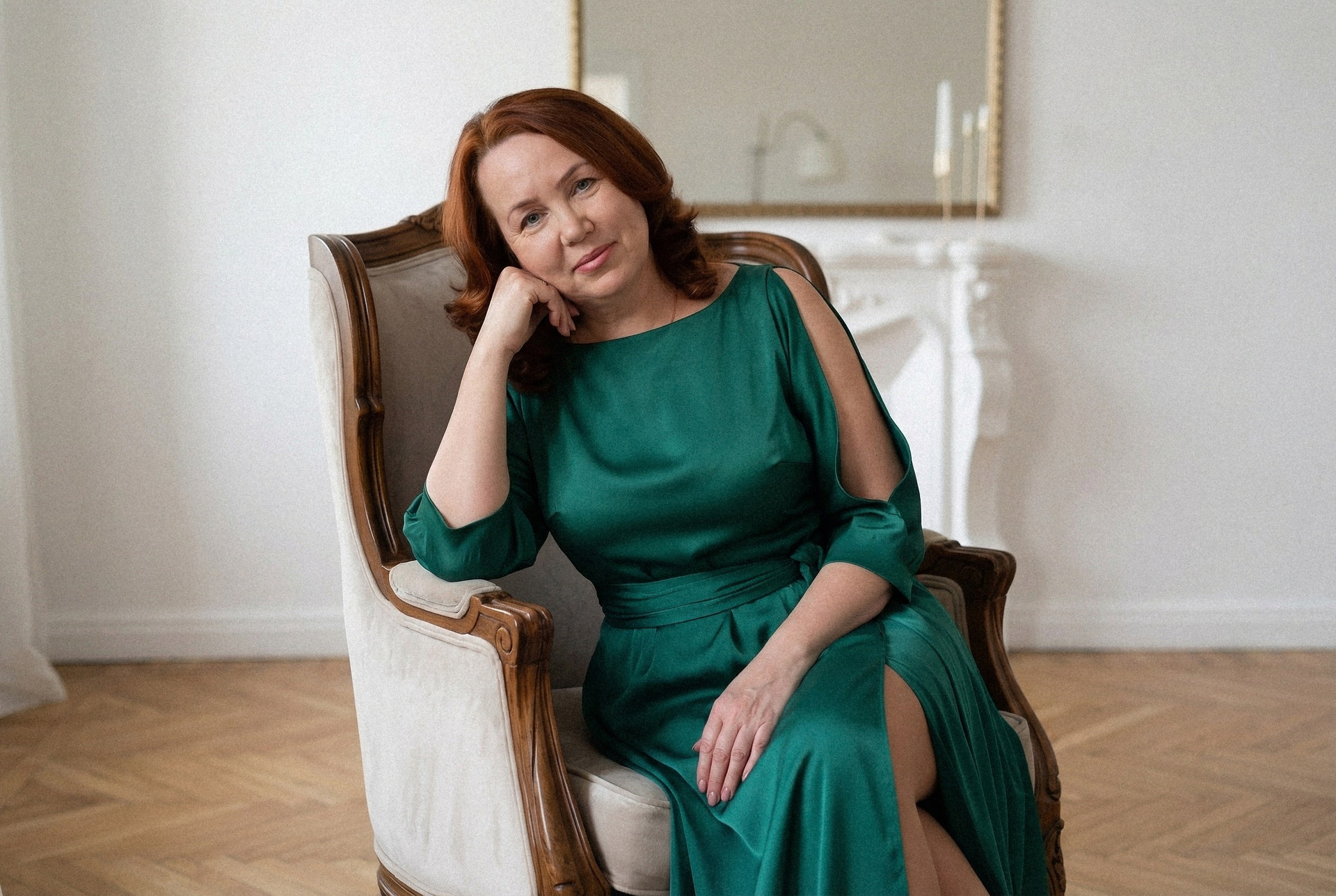 Мы начали с настоящей фотосессии Светланы: искали естественный свет, движение, и те моменты, когда взгляд говорит больше, чем слова. Здесь каждое прикосновение, изгиб плеча, мягкая улыбка — это Светлана настоящая, в том времени и пространстве, где она позволила себе быть собой.